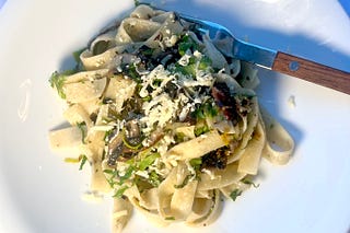 Mushroom Tagliatelle with Garlic Confit in a Light Butter Sauce