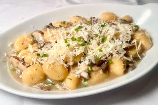 Mushroom and Chives Gnocchi in Fish Stock with Plenty of Parmesan