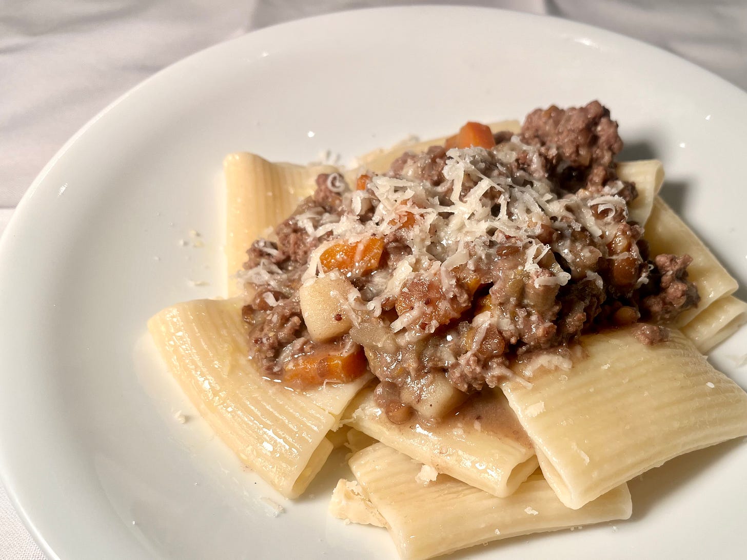 Pro tip: a nappé consistency will be great for this ragu. It is when the sauce coats the back of a large spoon, and you can draw a clean line through it with a finger. That said, go wild! It’s your dish!